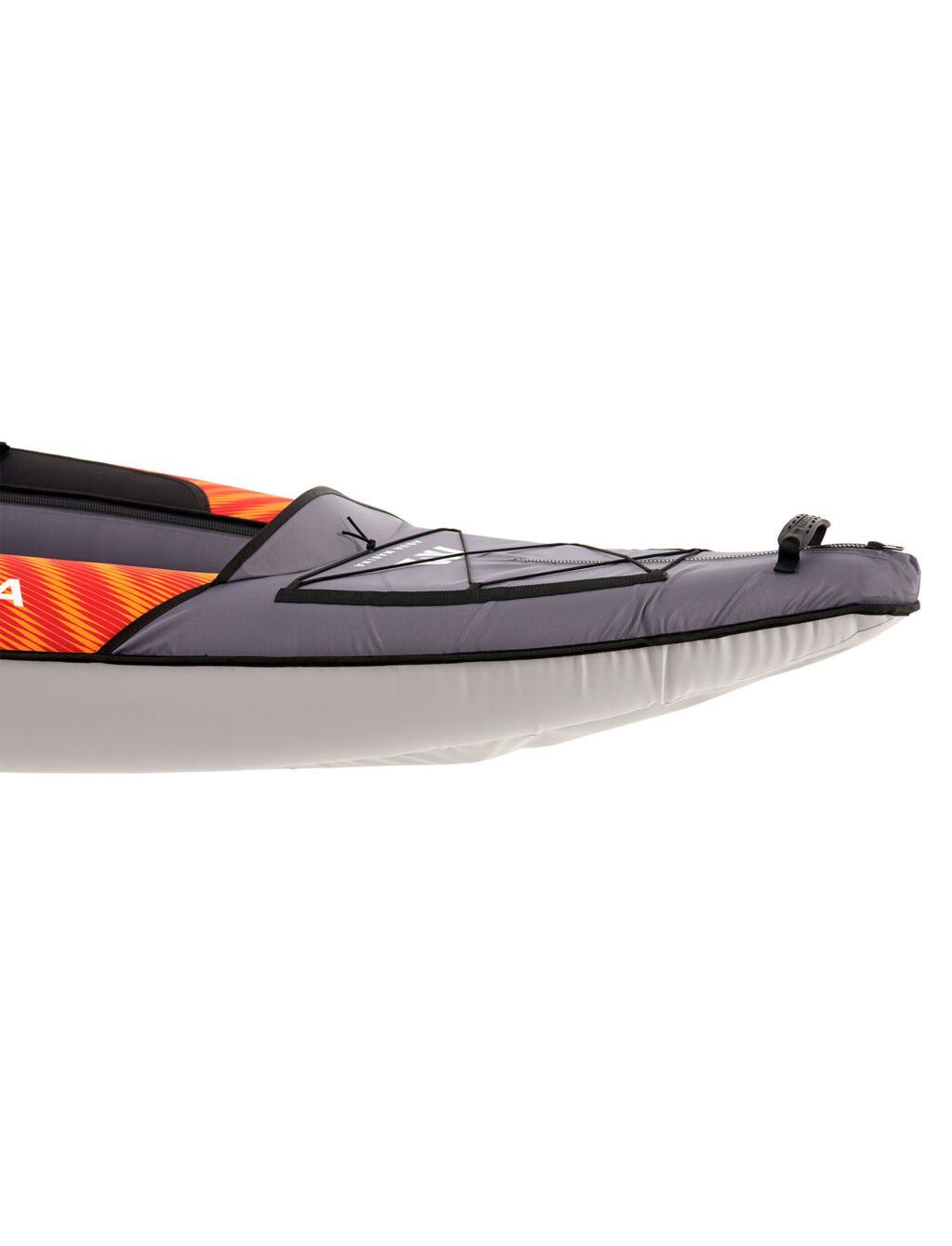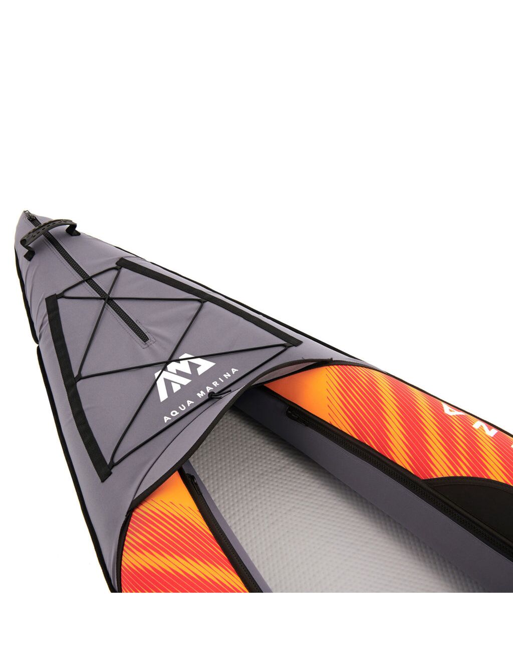 - Удлиненные козырьки на носу и корме каяка с эластичной шнуровкой для защиты от брызг воды и надёжного крепления багажа