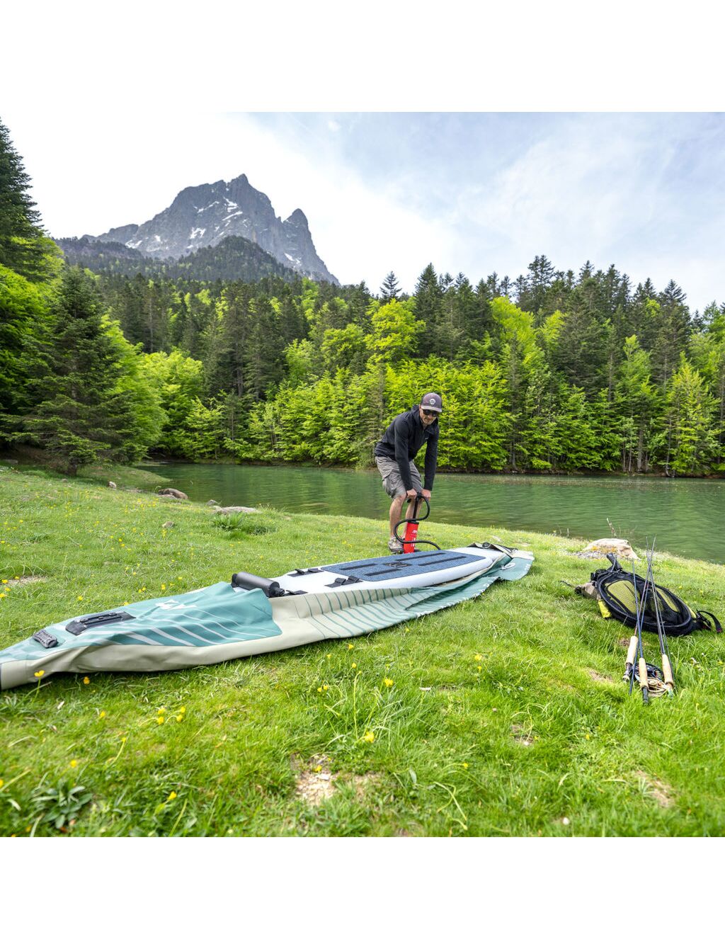 Жёсткий надувной пол сконструирован по технологии Drop Stitch (камера высокого давления) и позволяет рыбачить даже в положении стоя |